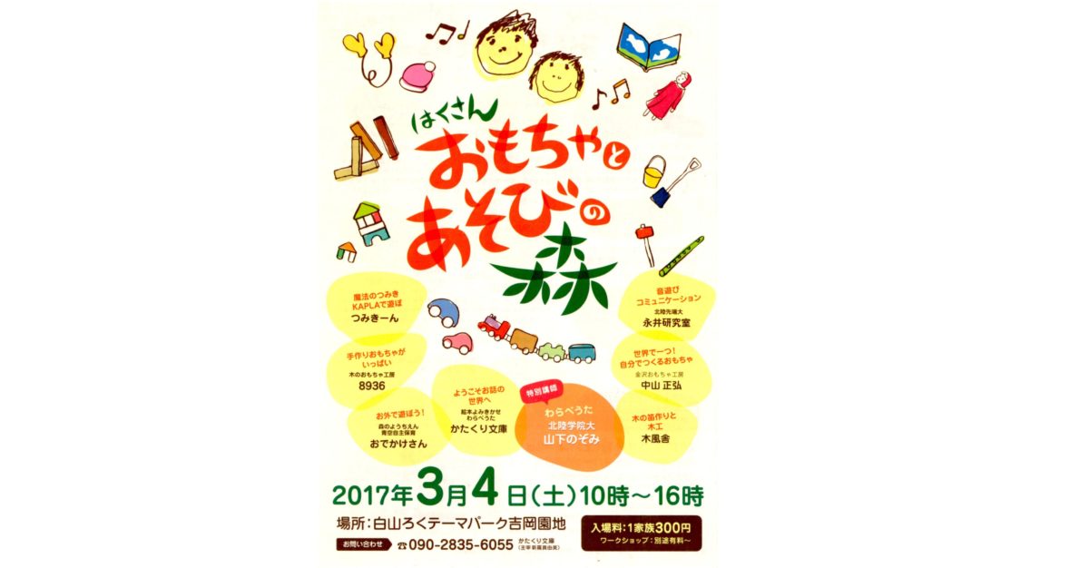 はやくも「はくさんおもちゃとあそびの森」も4回目の開催となりました。