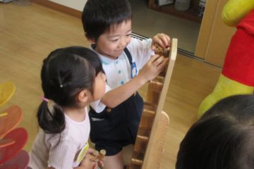 先日送っていただいた、木のおもちゃで、子供たちが遊ぶ様子をお送りします。