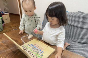 お母さんと一緒に、自分専用のパソコンでお仕事気分満喫!!楽しんでいる様子がうかがえます。